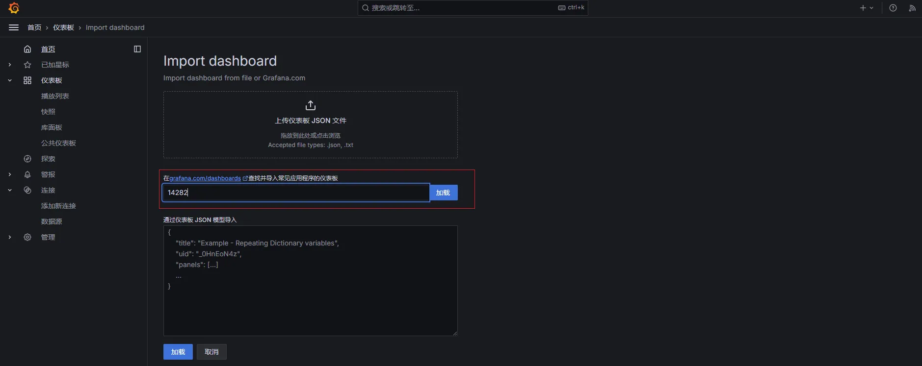 - 导入仪表板