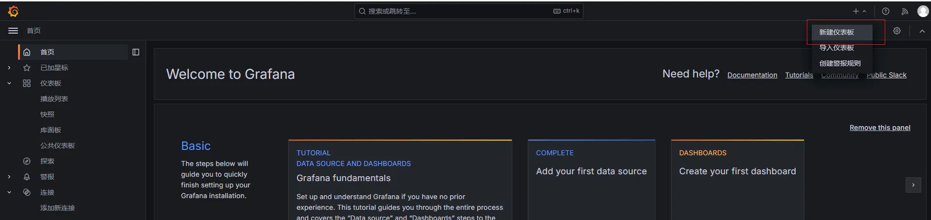 打开网址:http://<ip>:3000,首次进入账号密码均为admin , 会提示修改密码。
